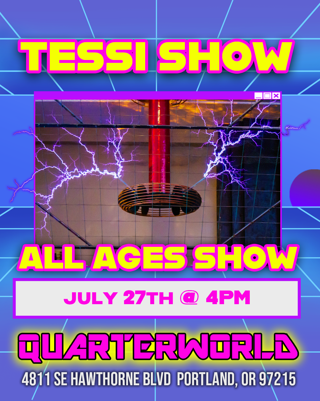 Tessi ALL AGES SHOW IS BACK FOR SUMMER 2025! Bring your family to enjoy the electronic sounds of Tessi on July 27th @ 4pm!